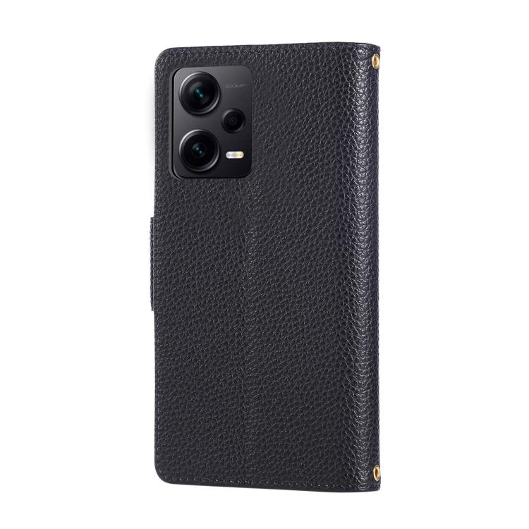 Funda de cuero con hebilla redonda y cremallera para Redmi Note 12 Pro 5G, con correa cruzada (negro)
