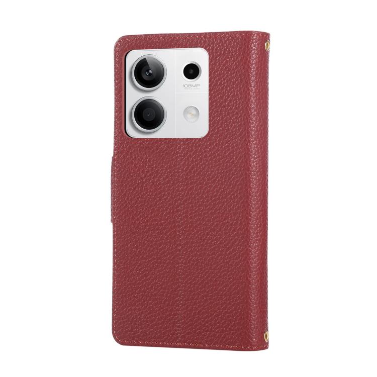 Funda de cuero con hebilla redonda y cremallera para Redmi Note 13 5G, con correa cruzada (roja)