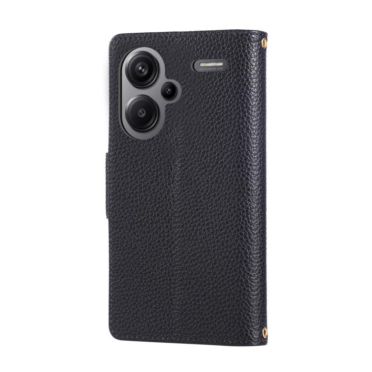 Funda de cuero con hebilla redonda y cremallera para Redmi Note 13 Pro+, con correa cruzada (negra)