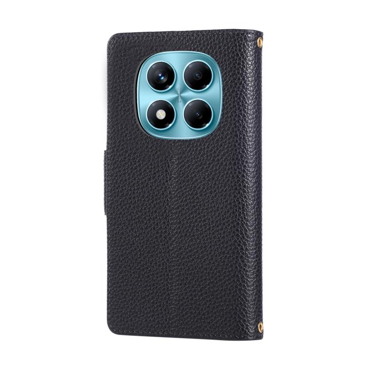 Funda de cuero con hebilla redonda y cremallera para Redmi Note 14 Pro 4G, con correa cruzada (negro)
