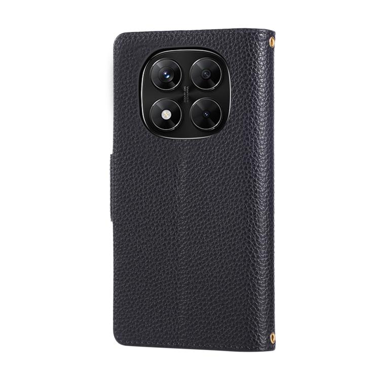 Funda de cuero con hebilla redonda y cremallera para Redmi Note 14 Pro 5G, con correa cruzada (negro)
