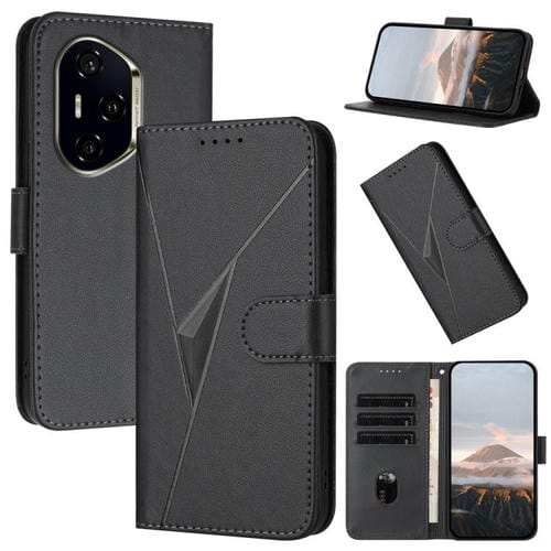 Funda de Cuero con Hebilla y Diseño Triangular para Honor 300 Pro y 300 Ultra (Negra)