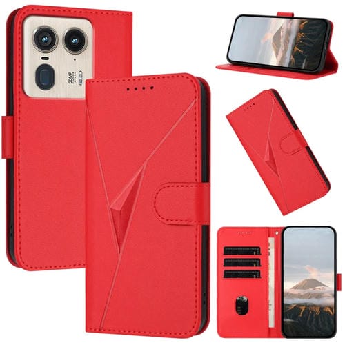 Funda de Cuero con Hebilla y Diseño Triangular para Motorola Edge 50 Ultra (Rojo)