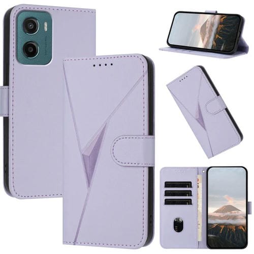 Funda de Cuero con Hebilla y Diseño Triangular para Motorola Moto G05 (Morado Claro)