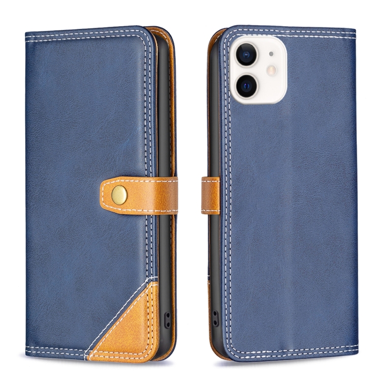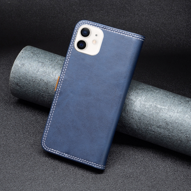 Funda de Cuero para iPhone 12 Mini con Hilo de Coser Doble a Juego (Azul)