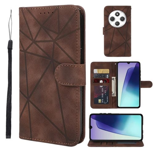 Funda de Cuero con Líneas Geométricas y Tacto Sedoso para Samsung Galaxy A36/A56 5G (Marrón)