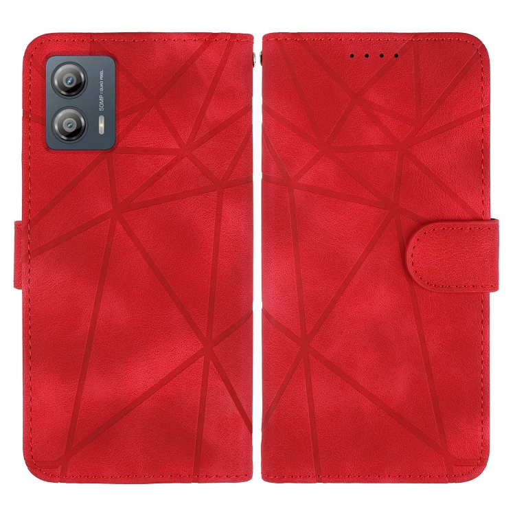 Funda de Cuero para Motorola Moto G53 con Líneas Geométricas y Tacto Suave (Rojo)