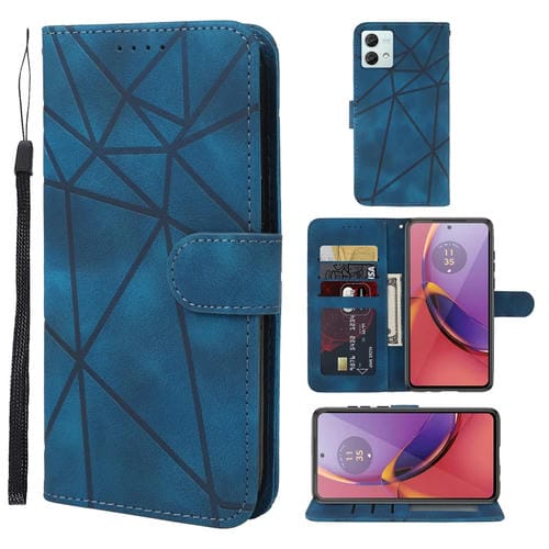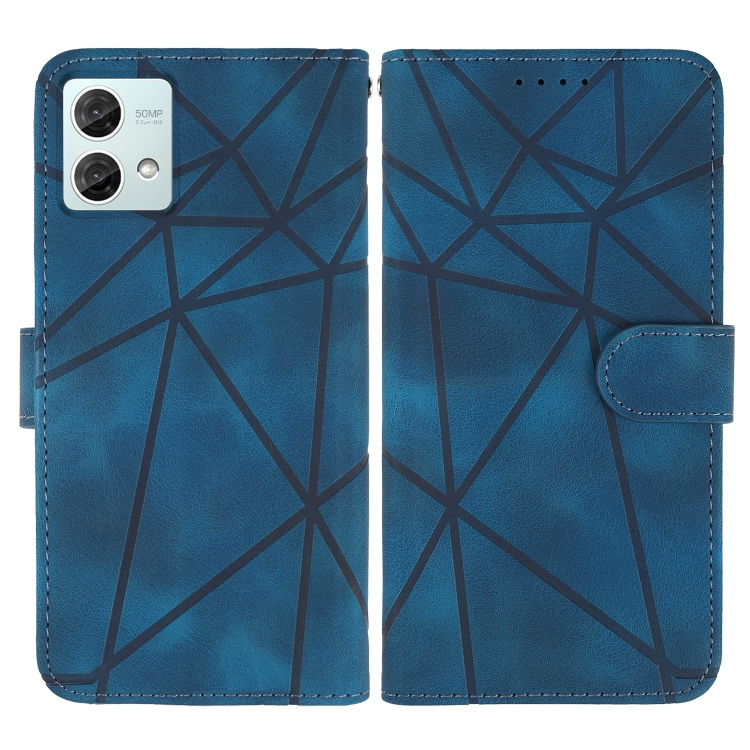 Funda de Cuero para Motorola Moto G84 con Líneas Geométricas y Tacto Suave (Azul)