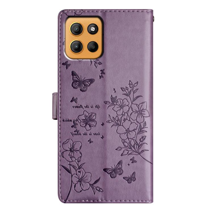 Funda de Cuero para Motorola Moto G15 con Mariposas y Flores (Morado)