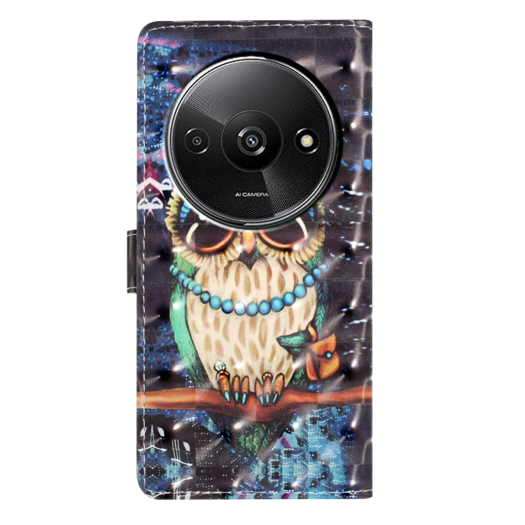 Funda de Cuero con Patrón 3D para Redmi A3 (Búho de Ojos Grandes)