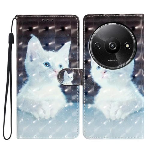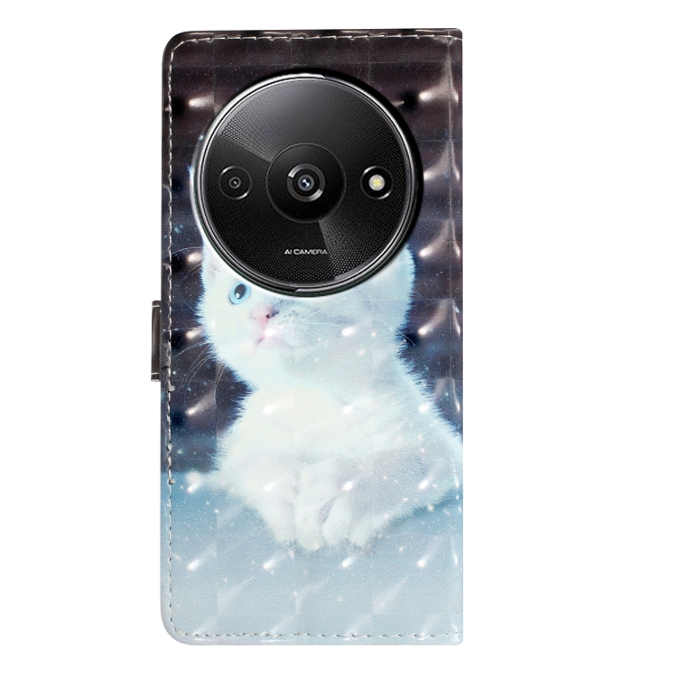 Funda de Cuero con Patrón 3D para Redmi A3 (Gato Blanco)