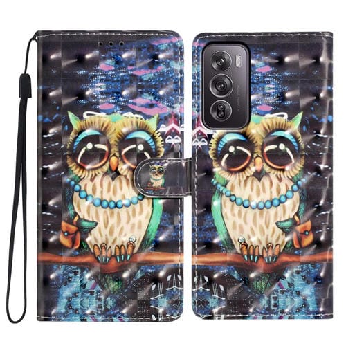 Funda de Cuero con Patrón 3D para Teléfono Oppo Reno12 Pro Global (Búho de Ojos Grandes)