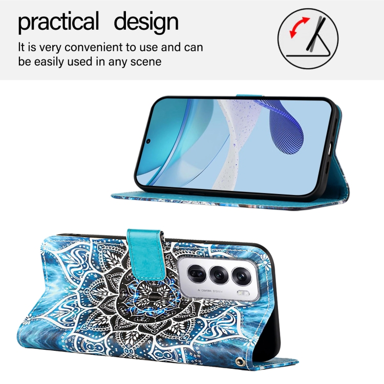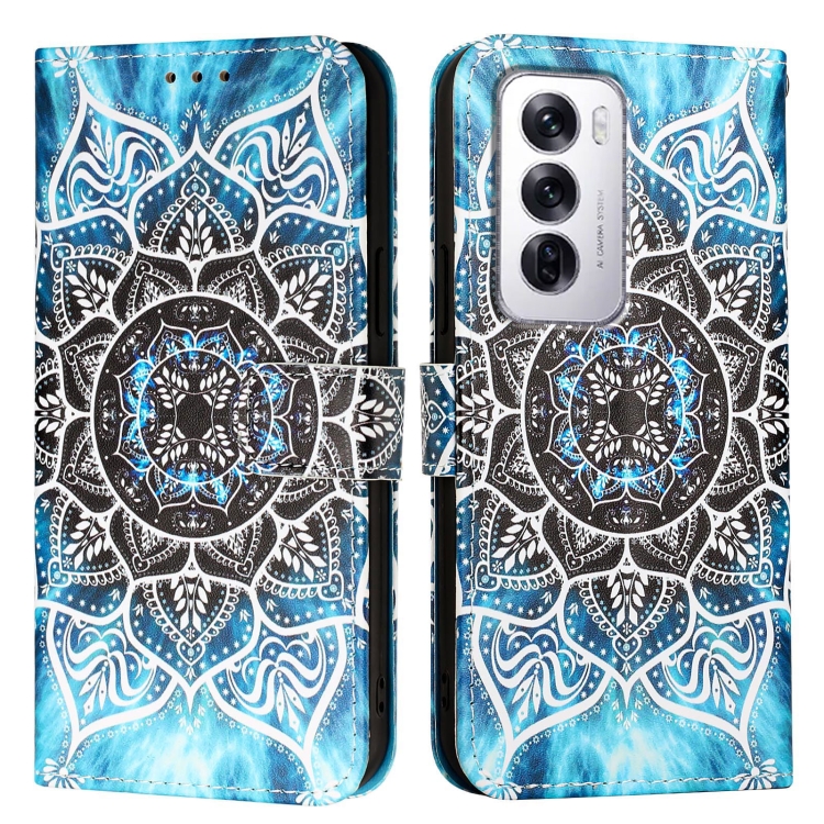 Funda de Cuero con Patrón de Dibujo Colorido y Tejido Liso para Teléfono Oppo Reno12 Global (Mandala Submarino)