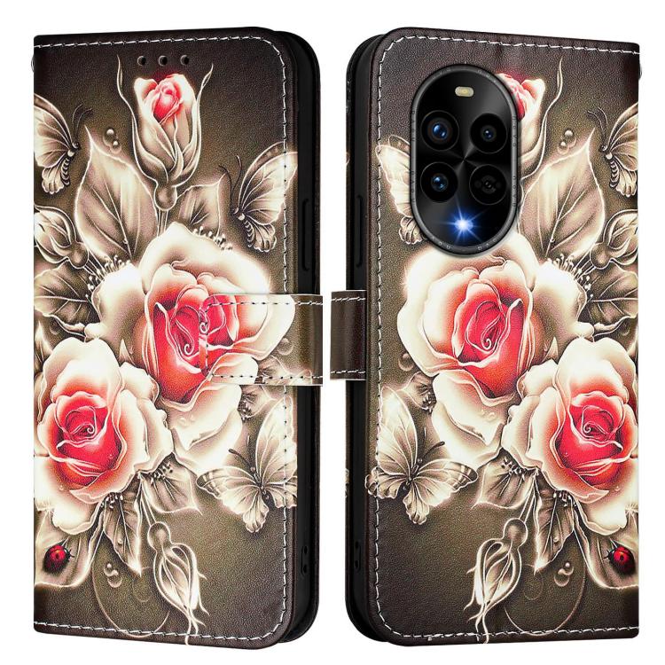 Funda de Cuero para Huawei Nova 13 Pro con Patrón de Dibujo de Colores (Rosas Sobre Negro)