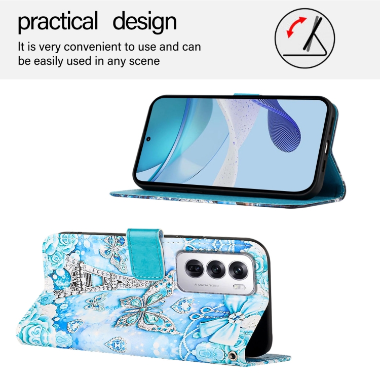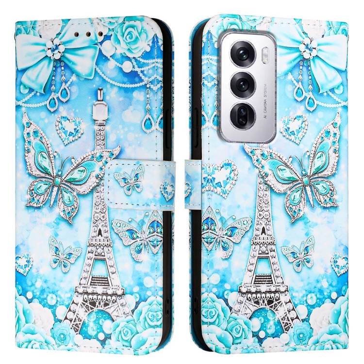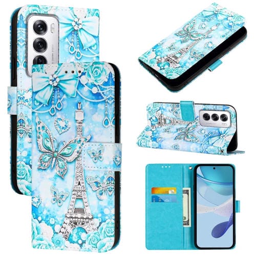 Funda de Cuero con Patrón de Dibujo de Colores para Oppo Reno12 Global (Mariposa En Forma de Torre)