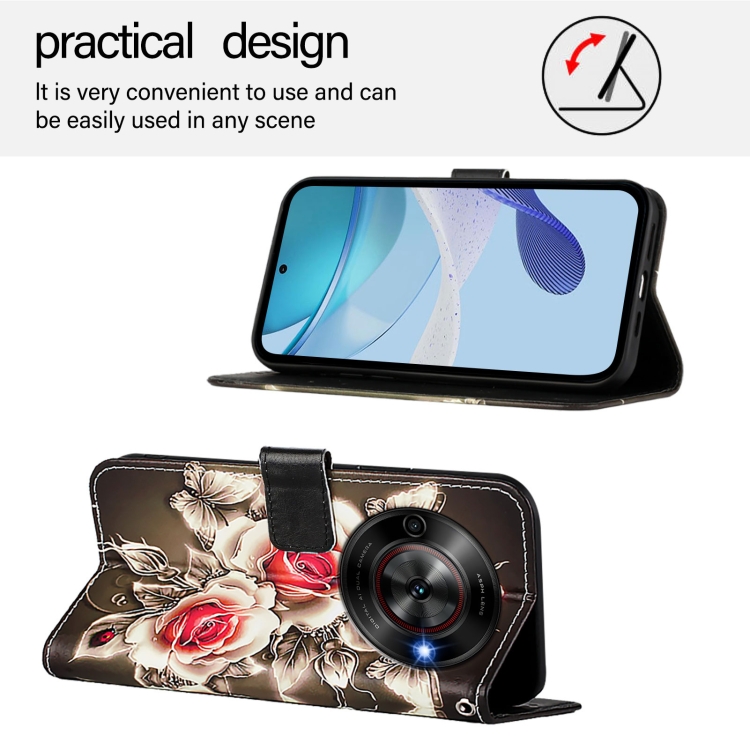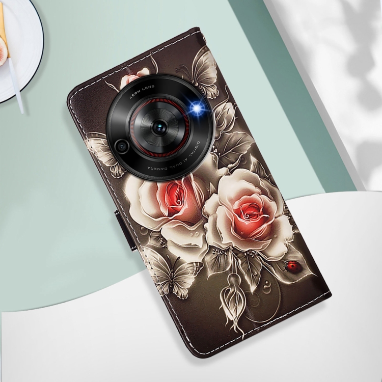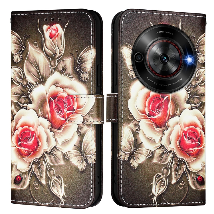 Funda de Cuero para ZTE Blade A75 5G y Nubia Focus con Patrón de Colores (Rosas Sobre Negro)