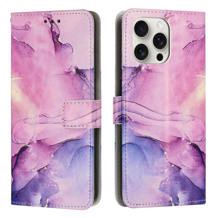 Funda de Cuero para iPhone 16 Pro Max con Patrón de Mármol Pintado (Morado)