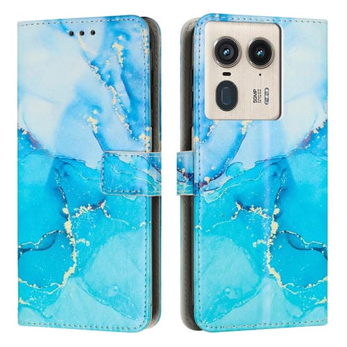 Funda de Cuero con Patrón Mármol para Motorola Edge 50 Ultra (Azul y Verde)