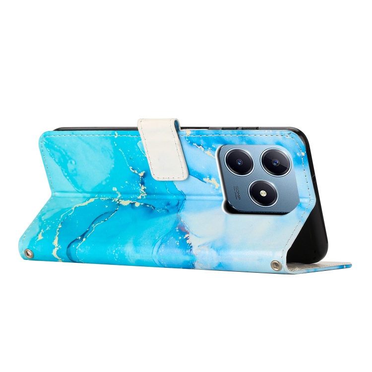 Funda de Cuero con Patrón de Mármol Pintado para Realme C63/C61/Note 60 (Azul y Verde)