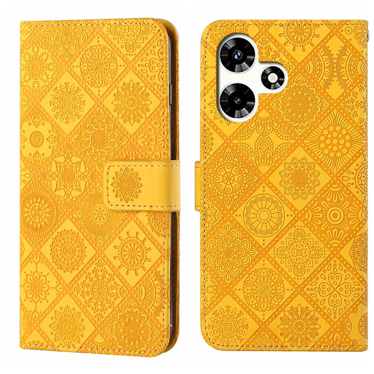 Funda de Cuero con Patrón En Relieve Étnico para Infinix Hot 30 Play Nfc (Amarillo)