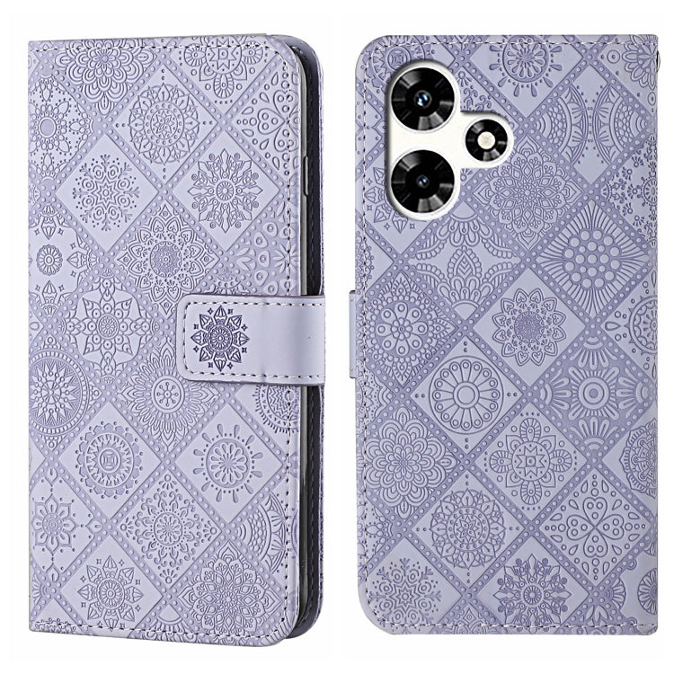 Funda de Cuero con Patrón en Relieve Estilo Étnico para Infinix Hot 30 Play Nfc (Morado)