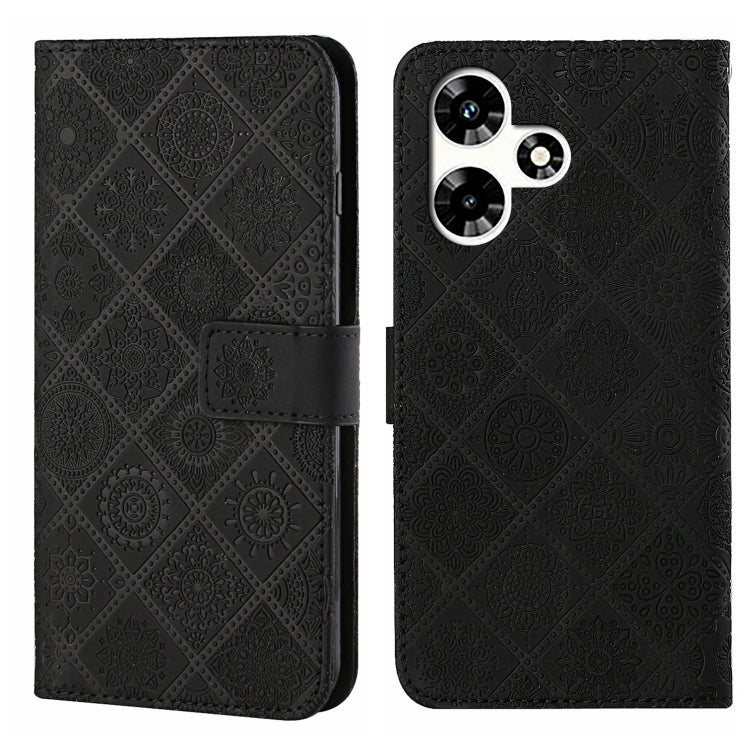 Funda de Cuero para Infinix Hot 30 Play NFC con Patrón Étnico en Relieve (Negro)