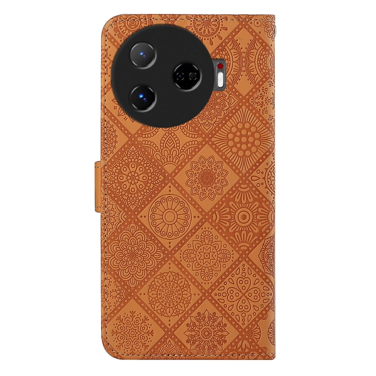 Funda de Cuero con Patrón En Relieve Estilo Étnico para Tecno Camon 30 Pro 5G (Marrón)