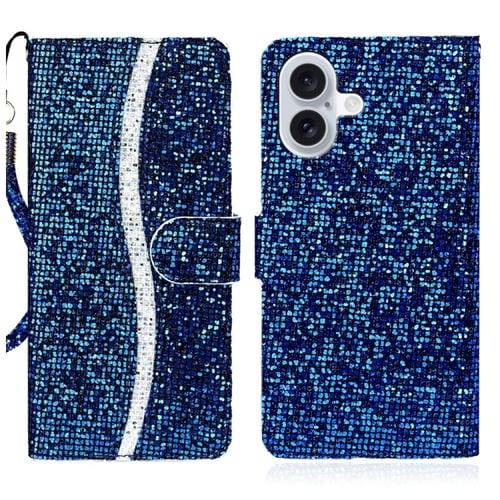 Funda de Cuero con Purpurina para iPhone 16 Plus (Azul)