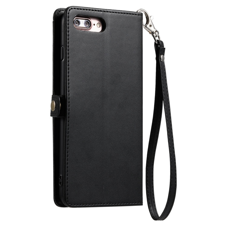 Funda de Cuero para iPhone 8 Plus/7 Plus Ranura Múltiples Tarjetas Cordón (Negro)