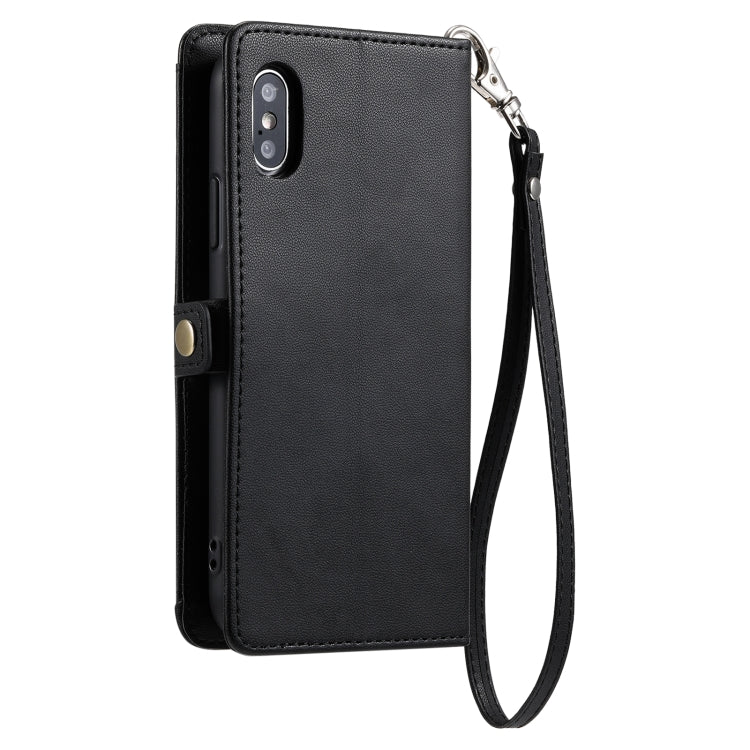 Funda de Cuero iPhone Xs Max Ranura Múltiples Tarjetas Cordón (Negro)