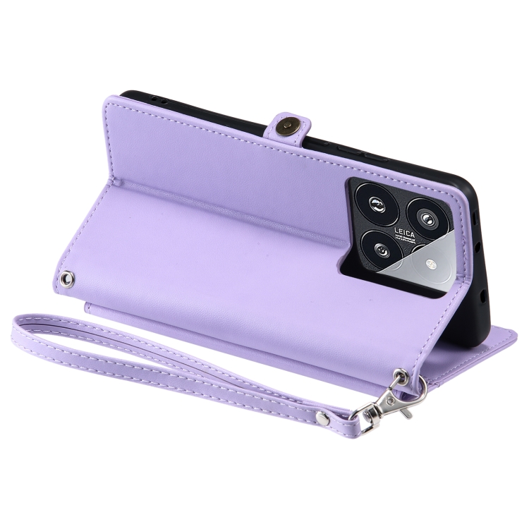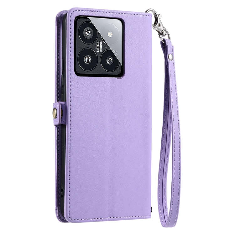Funda De Cuero Con Ranura Para Múltiples Tarjetas Y Cordón Para Xiaomi 14 Pro (Morado)