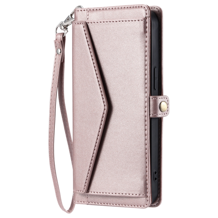 Funda de Cuero para Motorola Moto G35 con Ranura para Tarjetas y Cordón (Oro Rosa)