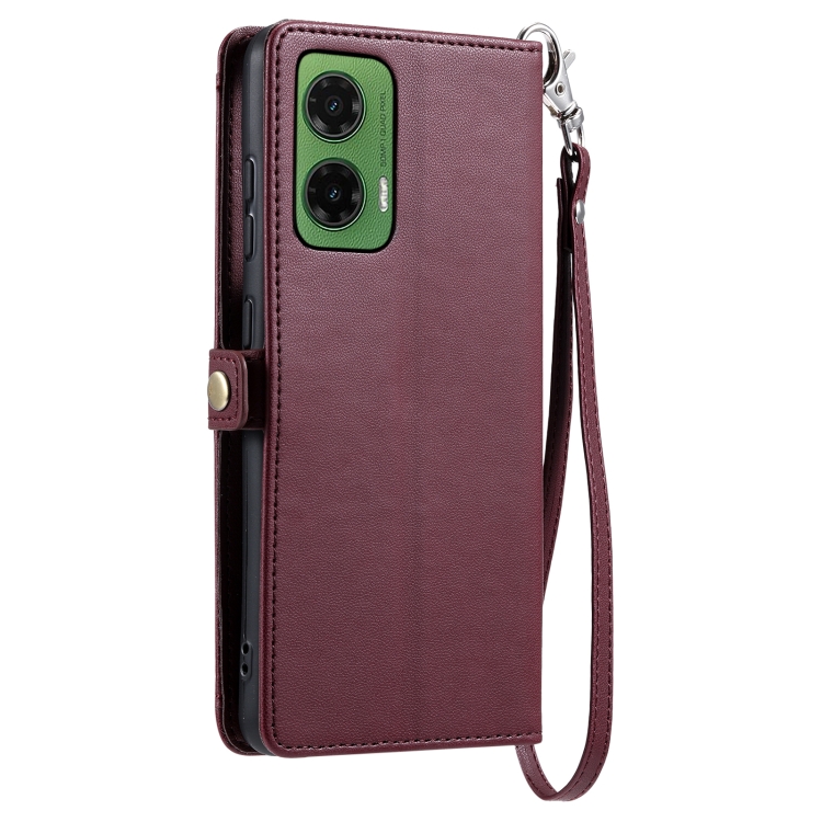Funda de Cuero para Motorola Moto G35 con Ranura para Tarjetas y Cordón (Rojo Vino)