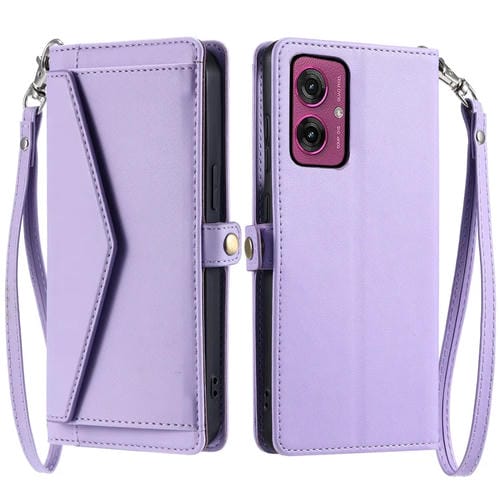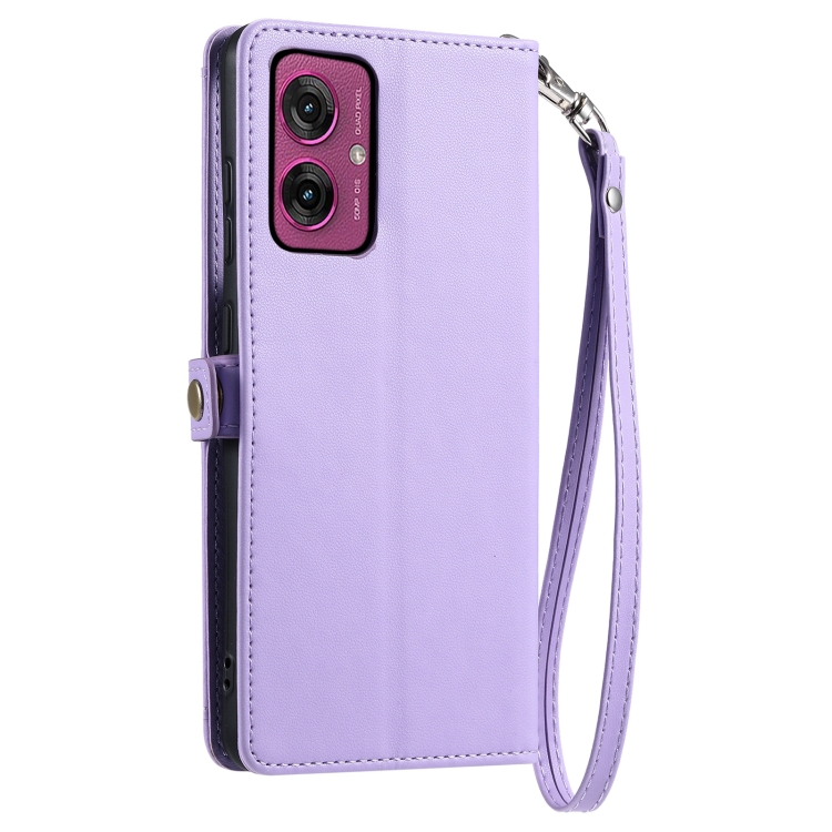 Funda de Cuero Motorola Moto G55 con Ranura para Tarjetas y Cordón (Morado)