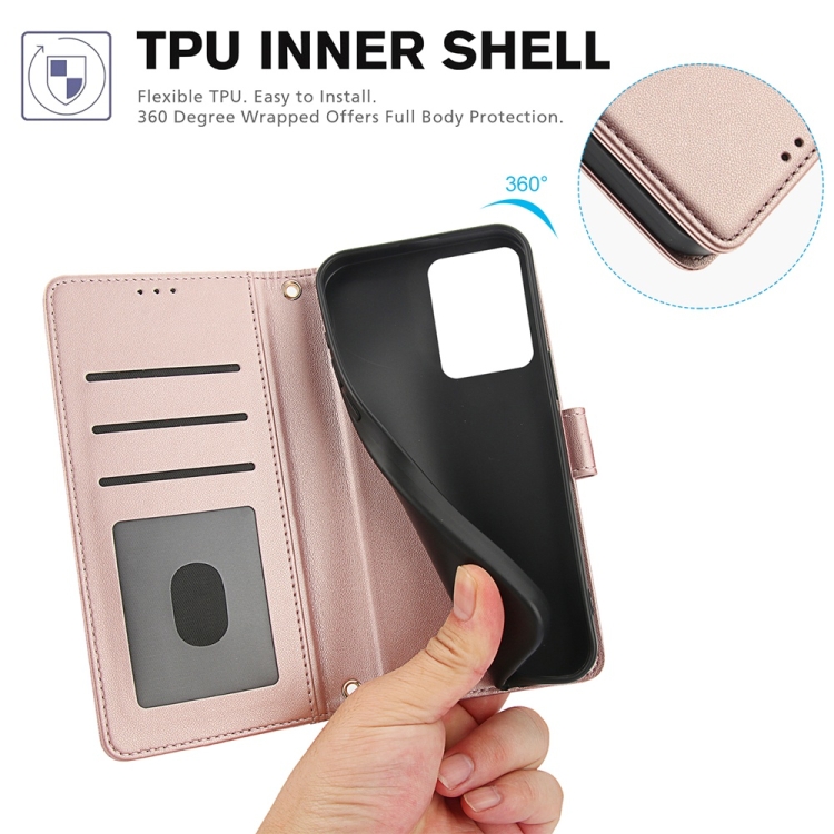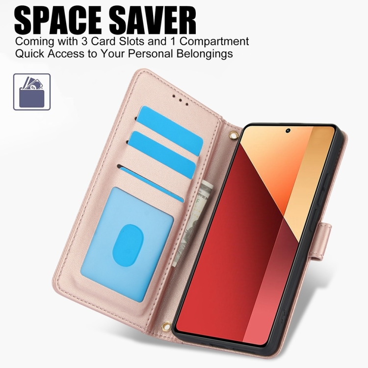 Funda de Cuero con Ranuras para Tarjetas y Tacto de Piel Global para Redmi Note 12 4G con Cordón Doble (Oro Rosa)