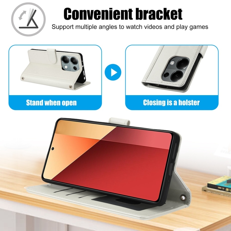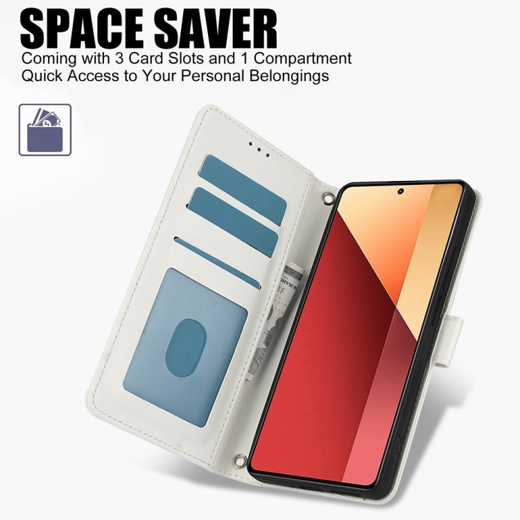 Funda de Cuero con Ranuras para Tarjetas y Tacto de Piel Global para Redmi Note 13 5G con Cordón Doble (Blanco)