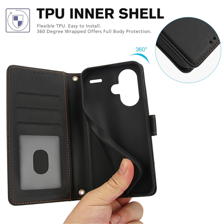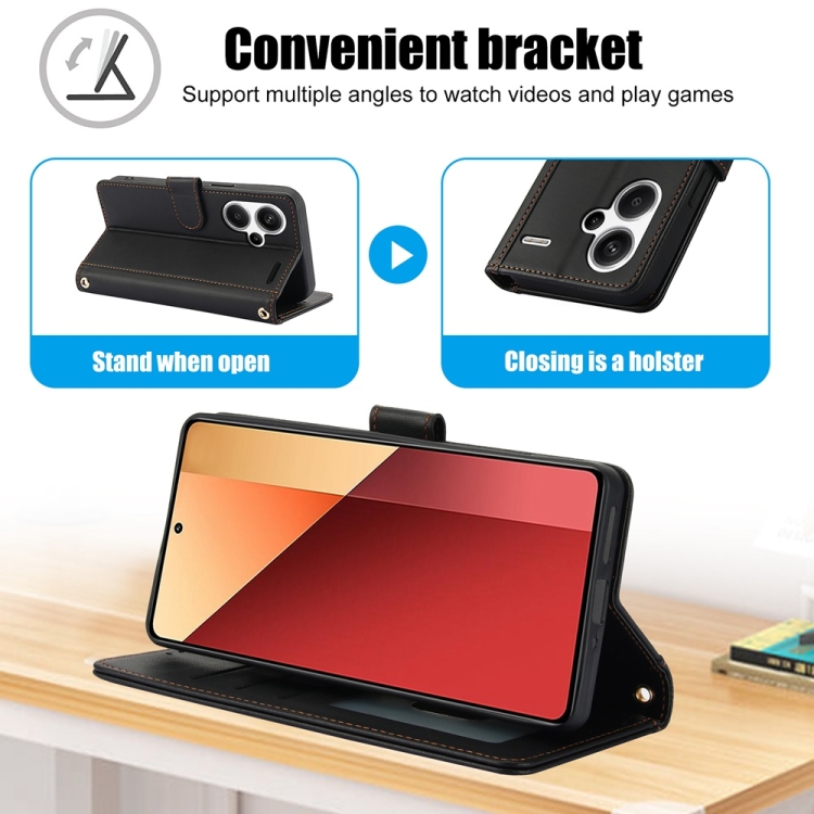 Funda de Cuero con Ranuras para Tarjetas y Tacto de Piel Global para Redmi Note 13 Pro+ 5G con Cordón Doble (Negro)
