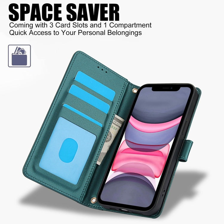 Funda de Cuero para iPhone Xs Max con Ranuras para Tarjetas y Cordón Doble (Verde)
