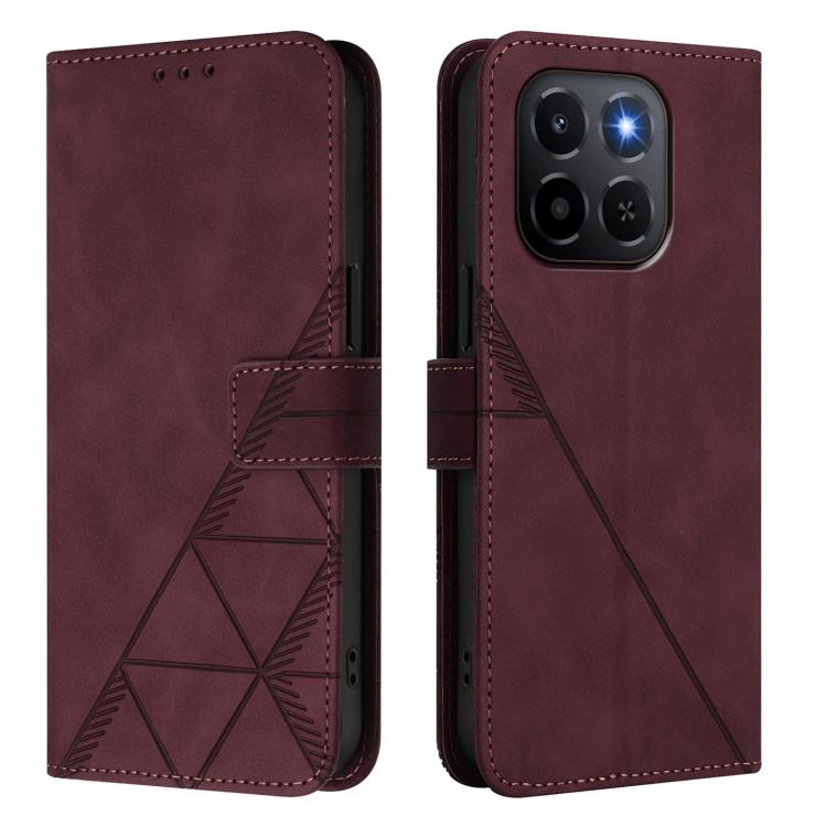 Funda de cuero con relieve 3D para Honor X6c 4G (rojo vino)