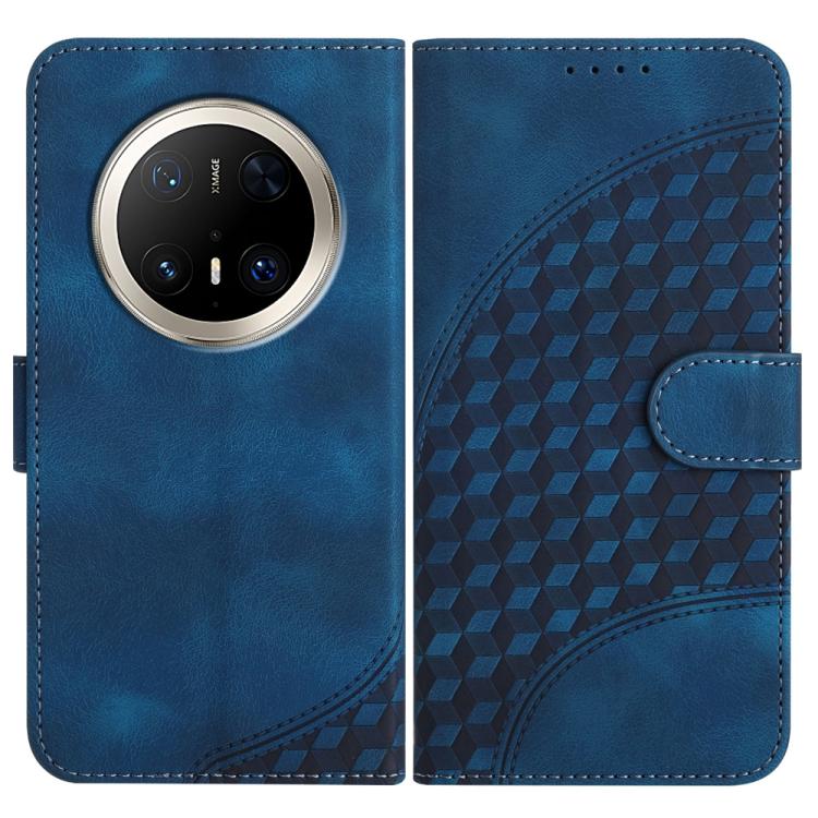 Funda de Cuero con Relieve Cabeza de Elefante para Huawei Mate 70 Pro y Pro+ con Cordón (Azul Real)