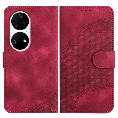 Funda de Cuero con Relieve Cabeza de Elefante para Huawei P50 Pro con Cordón (Rosa Rojo)