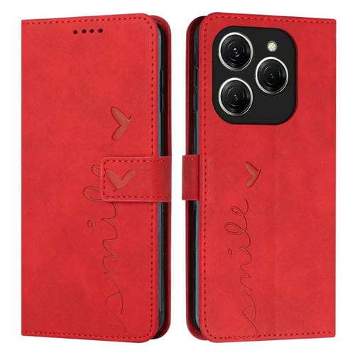 Funda de Cuero con Relieve de Corazón para Tecno Spark 20 Pro 5G (Rojo)