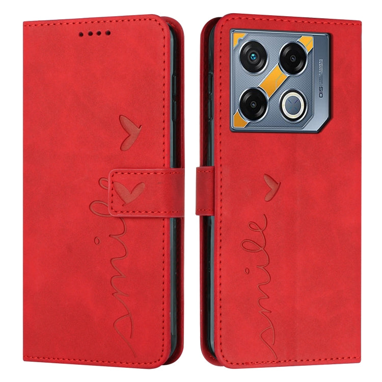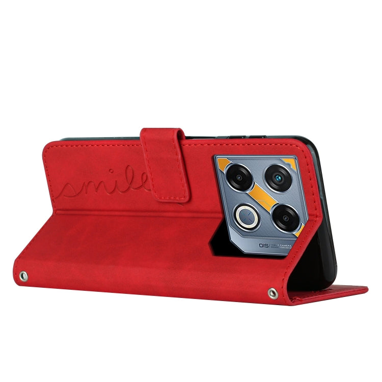 Funda de Cuero con Relieve de Corazón para Infinix Gt 20 Pro con Cordón Largo (Rojo)