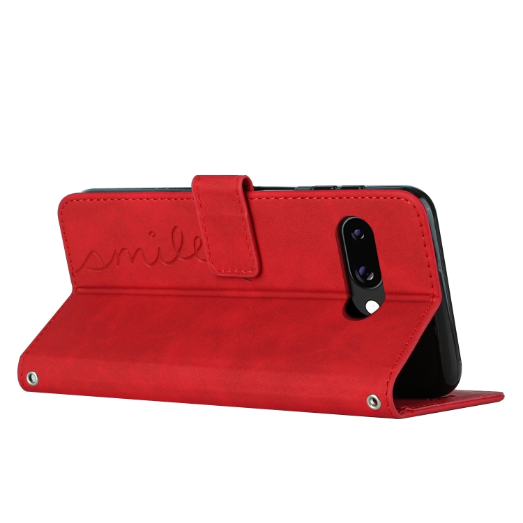 Funda de Cuero con Relieve de Corazón y Cordón Largo para Google Pixel 9A (Rojo)