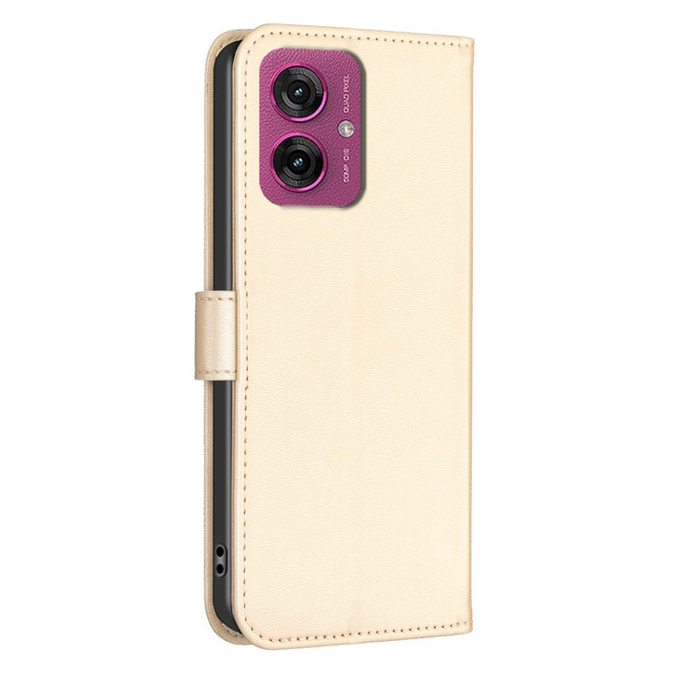 Funda de Cuero con Relieve de Cuatro Hojas para Motorola Moto G55 (Dorada)