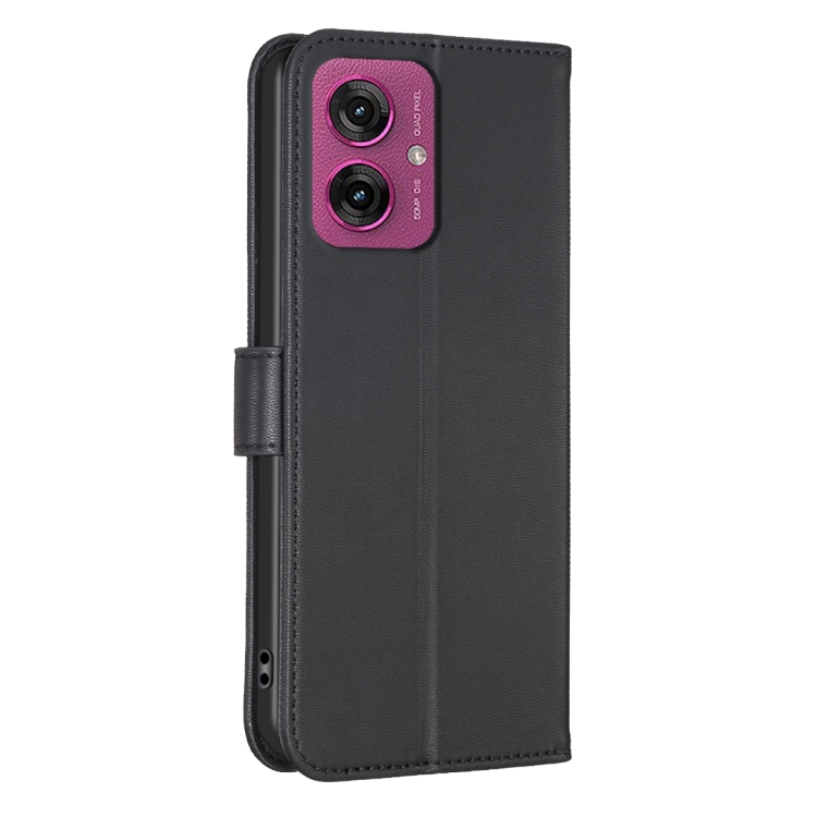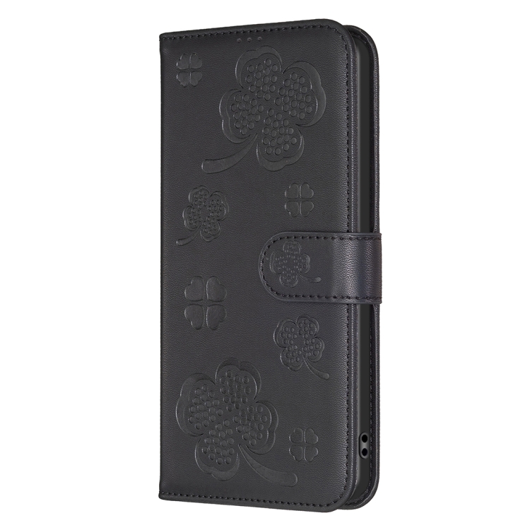 Funda de Cuero con Relieve de Cuatro Hojas para Motorola Moto G55 (Negra)