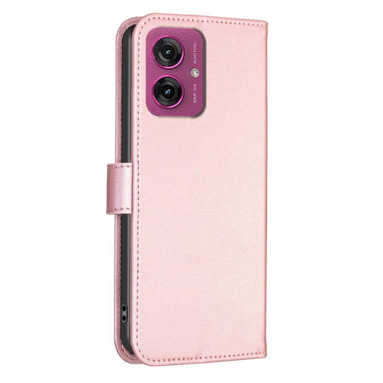 Funda de Cuero con Relieve de Cuatro Hojas para Motorola Moto G55 (Rosa)