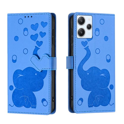 Funda de Cuero con Relieve de Elefante de Dibujos Animados para Redmi 12 4G/5G (Azul)