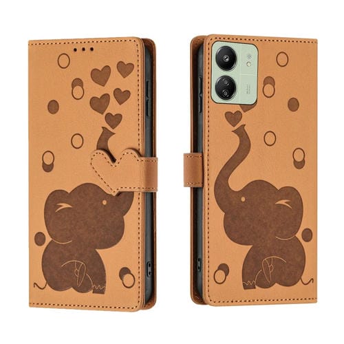Funda de Cuero con Relieve de Elefante de Dibujos Animados para Redmi 13C 4G (Amarillo)
