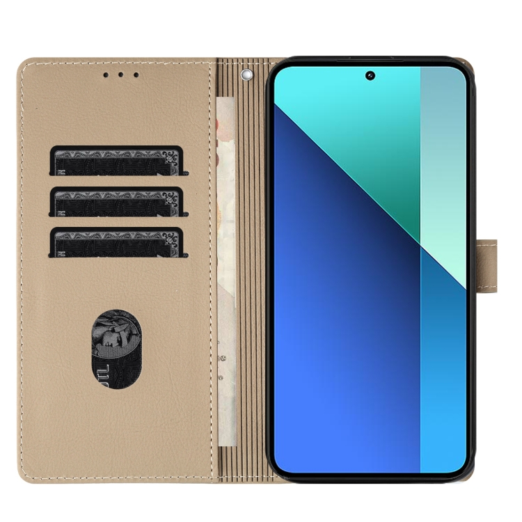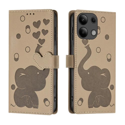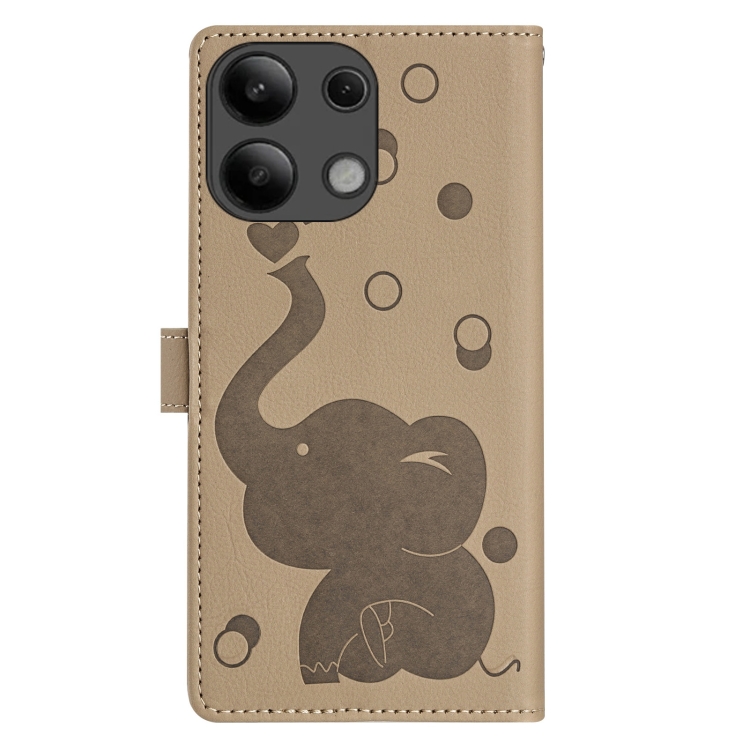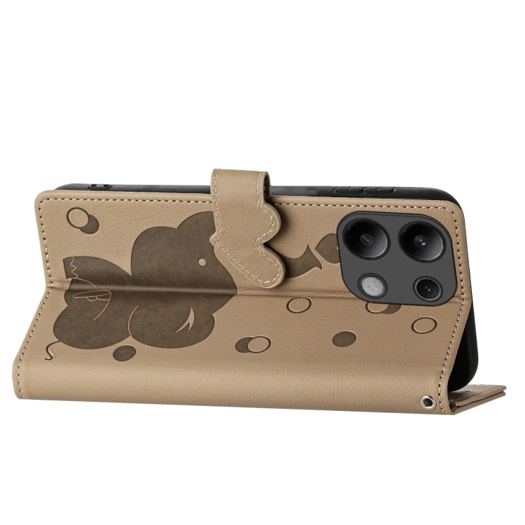 Funda de Cuero con Relieve de Elefante de Dibujos Animados para Redmi Note 13 Pro 4G (Caqui)